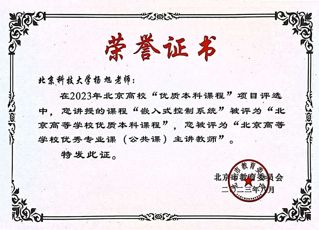 [32] 【优质课程奖】2023年8月,“嵌入式控制系统”获北京市高校优质本科课程