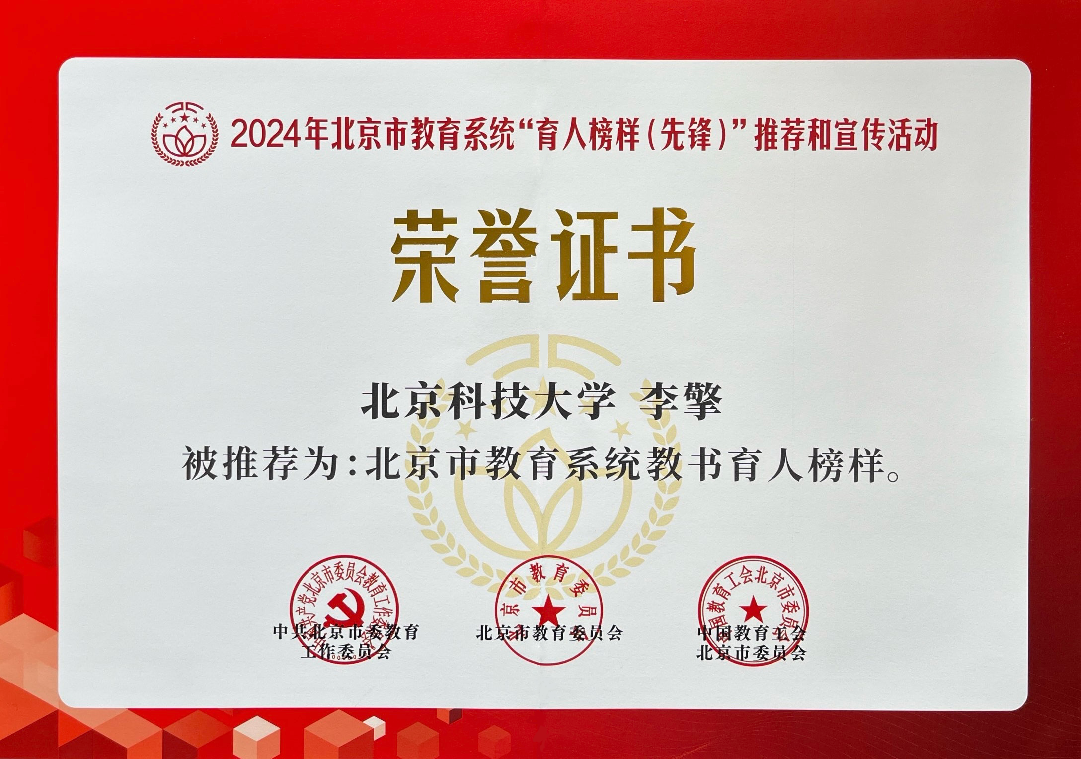[18] 【育人榜样奖】2024年6月,李擎获北京市教育系统教书育人榜样
