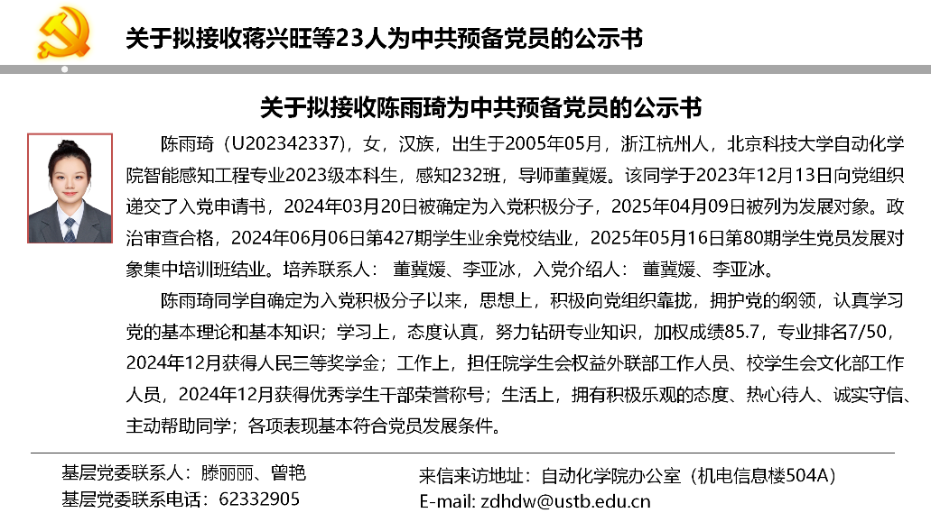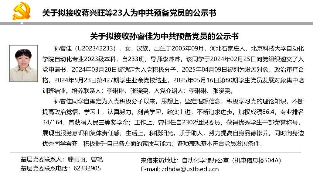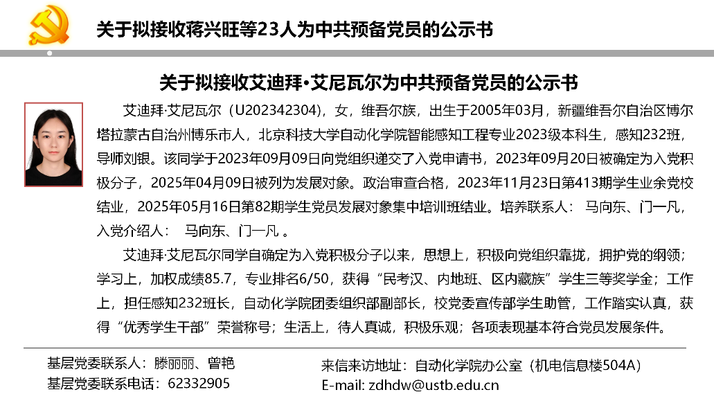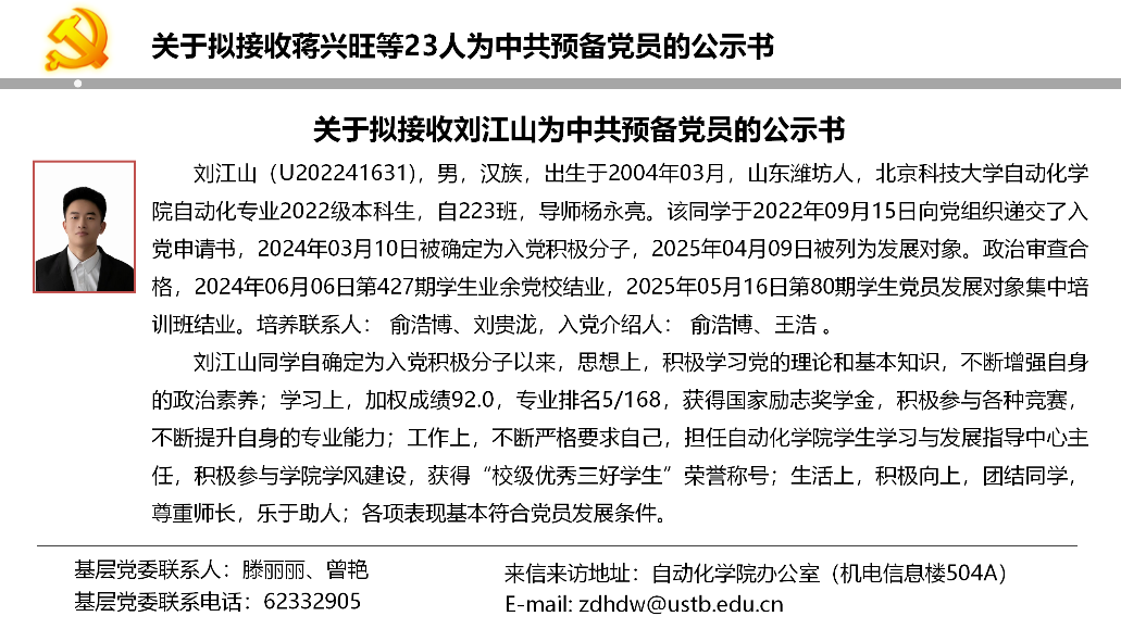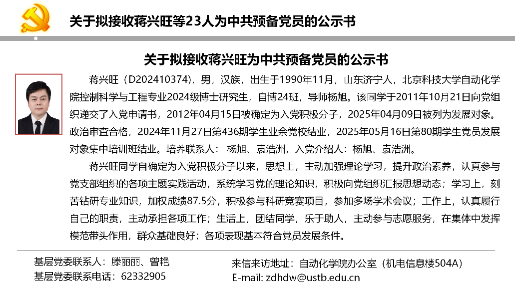 关于拟接收蒋兴旺等23人为中共预备党员的公示书